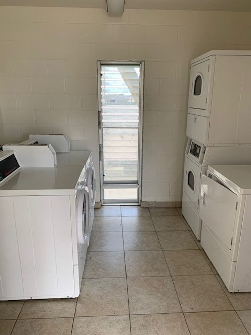 Trash chute; coin-operated laundry on site; elevator; secured building.