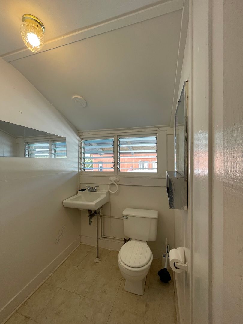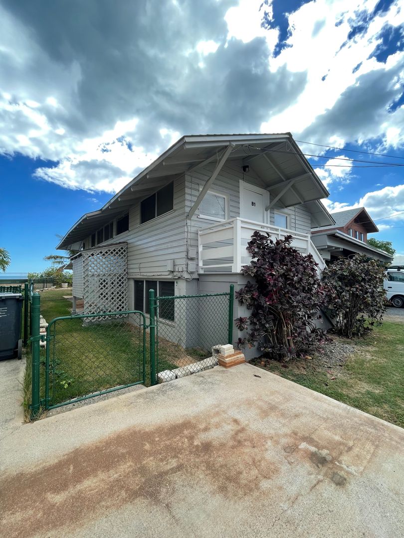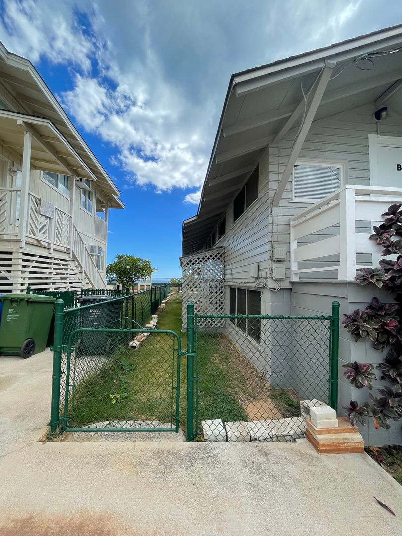 2 story duplex unit at the end of a lane on Ewa Beach Road. Home features living room, kitchen and full bath downstairs and large bedroom, closet and 1/2 bath upstairs. One covered parking and 1 open parking on property. Washer hook-up available in garage with access to a dryer. $100 fixed electric charge/person/month and $55 fixed water/sewer charges/unit/month. No range in unit, but you could use hot plate or toaster over for cooking options. House is right next to sandy beach access, owner lives on property! Renters insurance required. Tenant must provided proof of coverage prior to occupancy. Sorry no pets and no smoking.