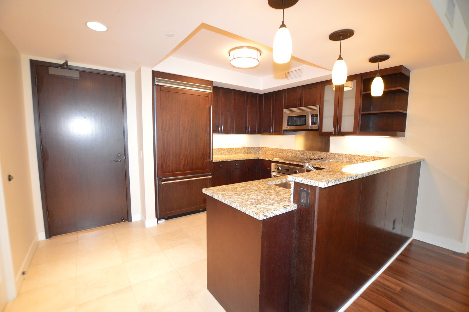 The Watermark is an exceptional building located at the edge of Waikiki. This beautifully maintained 2-bed, 2-bath unit features a spacious lanai perfect for relaxing and enjoying the stunning ocean and harbor views.  The interior boasts luxury vinyl flooring in the main living areas and bedrooms, with elegant ceramic tile in the bathrooms. A modern kitchen is outfitted with stainless steel Viking appliances, with new dishwasher and microwave hood fan coming soon. The primary bathroom offers a spa-like atmosphere with both a shower and a soaking tub. Laundry in hallway closet, private balcony and 2 dedicated parking stalls. Enjoy a wide range of resort-quality amenities, including multiple BBQ areas, a heated swimming pool, whirlpool spa, male and female saunas, a fully equipped fitness center, and award-winning tropical gardens. Additional features include a serene library, concierge service, and 24-hour security.  Ideally located just minutes from Ala Moana Center and Waikiki. Tenant covers electricity and any premium cable. Renter's insurance is required prior to move-in. No smoking or pets please.