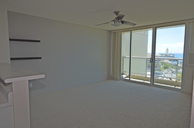 This modern high-rise in downtown features a stylish, well-maintained one-bedroom, one-bath unit with two unassigned parking spaces in a covered, secure garage. Enjoy stunning water views of the harbor. Conveniently located near Chinatown, downtown, shopping, and Aloha Tower. The unit is beautifully designed with thoughtful details, including two window air conditioners, laminate flooring in the kitchen and bath areas, and carpeting in the living room and bedroom. A new electric stove and refrigerator will soon be installed. Laundry center is about 1 year old. The building offers on-site management, 24-hour security, and ample guest parking. A must-see! No pets or smoking allowed. Renter's insurance will be required prior to moving in the unit. Call or text Lurline for a showing - #808-741-1180 or email to Lur@pro808.com.