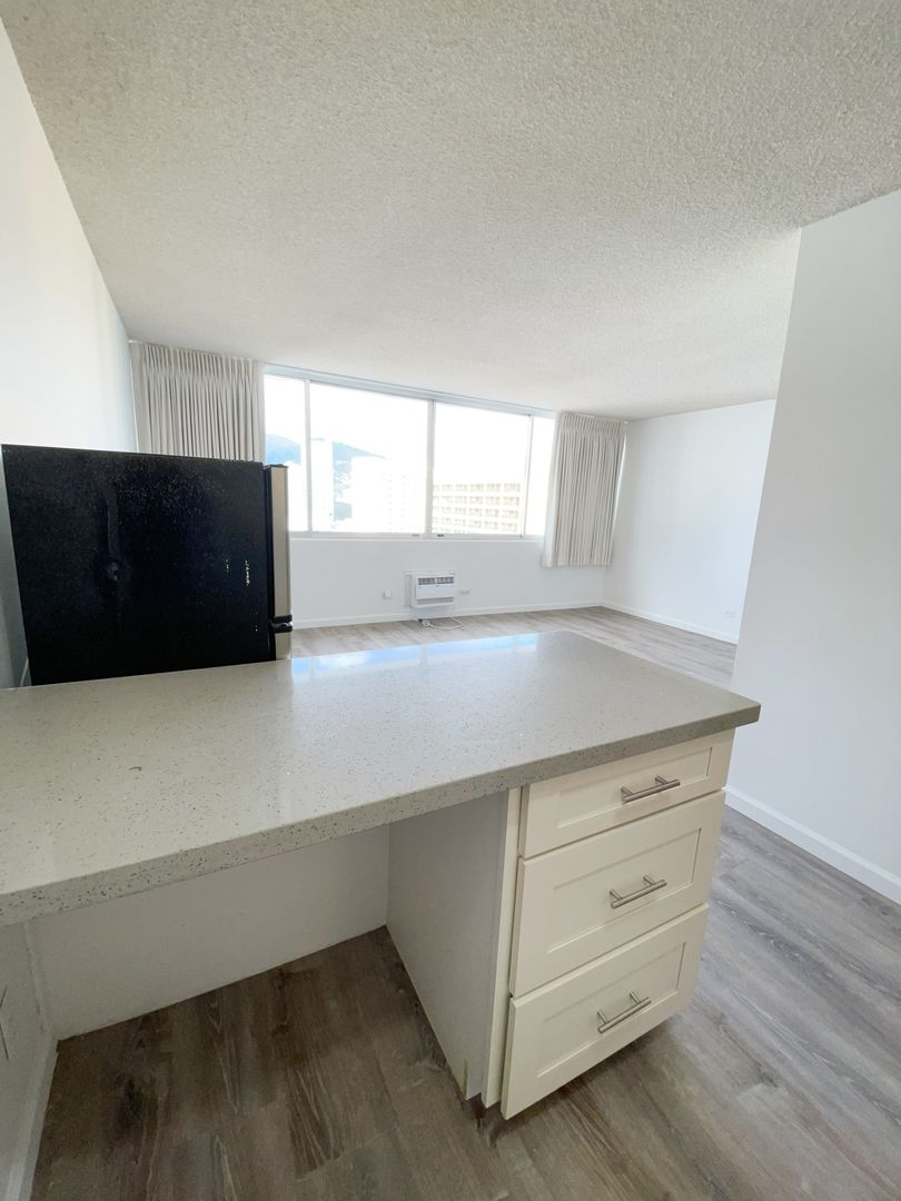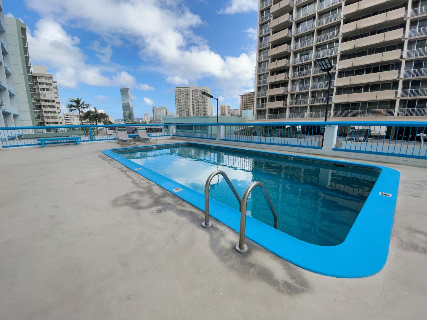Conveniently located unit in the Kapiolani Terrace Building which has a pool, BBQ grill, pool deck, vending machine, and more! This studio w/1 bath & 1 parking has hardwood cabinets, quartz kitchen countertops, vinyl plank floors, and a window AC! You'll love the convenience of being able to walk to Ala Moana Shopping Center, Waikiki, Ala Moana Beach Park, and much more! Unit comes with access to building laundry facilities. Water/sewer & 1 parking included in rent amount. Minimum 650 credit score and combined household income of at least 3 times the rent amount is required. $20 app fee per adult applicant also required. Renter's Insurance required. No pets and no smoking. Available now! Contact Robert for showing requests and questions at (808)398-0914 or robert@pro808.com.