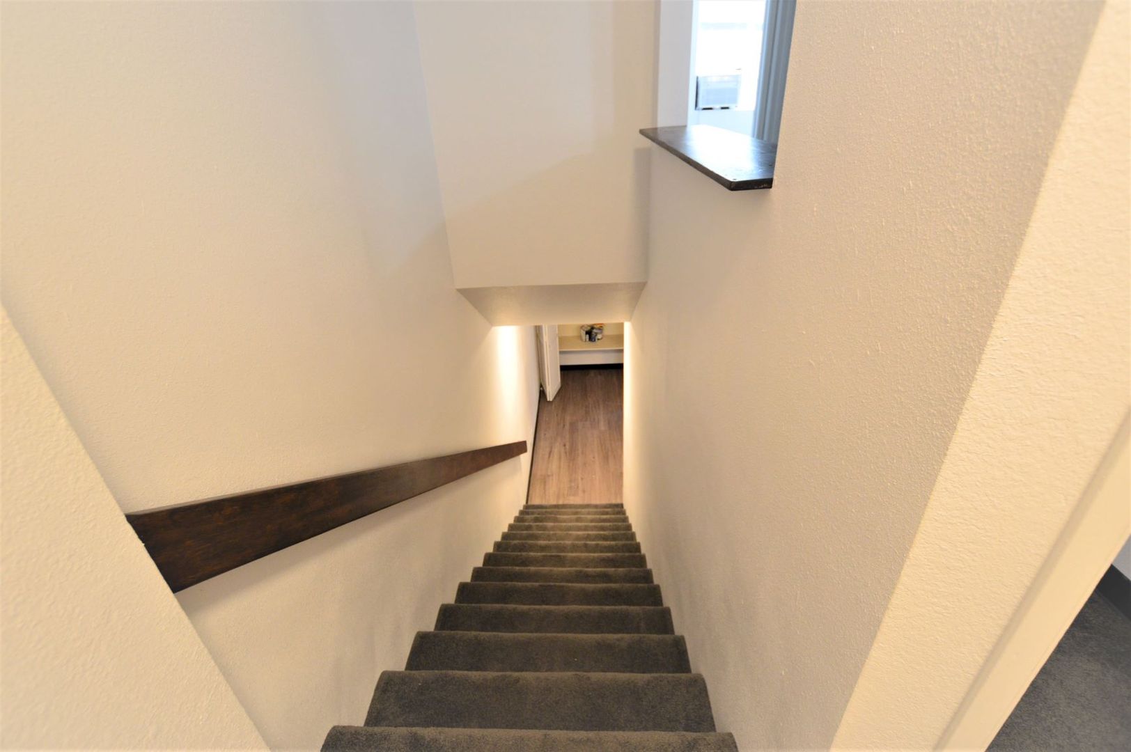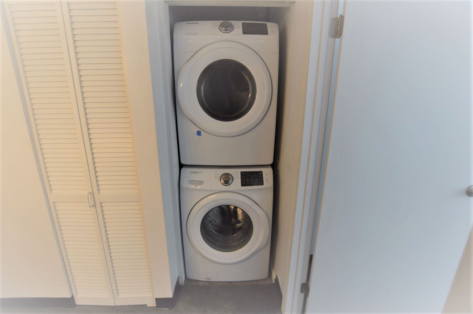 Remodeled split level townhome with 2 bedrooms, full bath, laundry center on main floor. Kitchen, living room, half bath, enclosed courtyard on lower level. Unit features window ACs, pull down blinds, vinyl plank and carpet flooring, ceiling fans, full size stack washer/dryer, S/S appliances, disposal and storage.