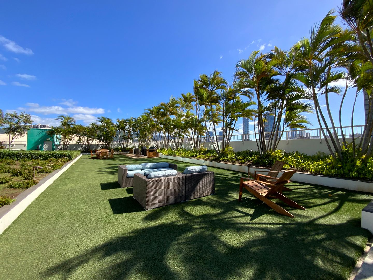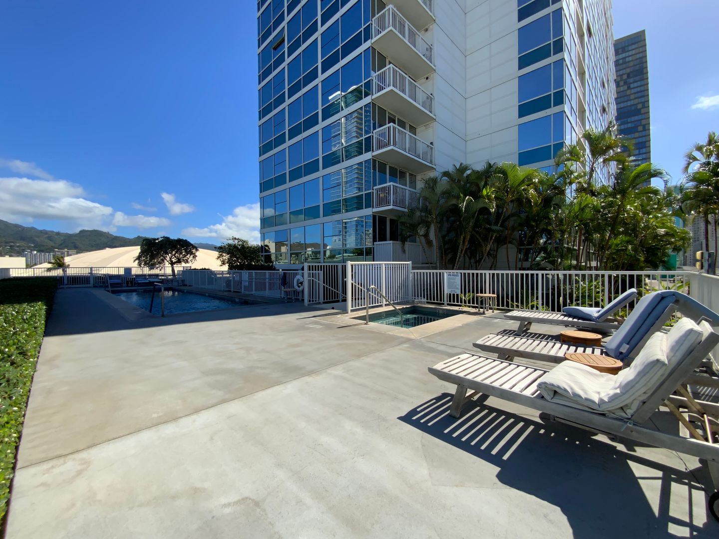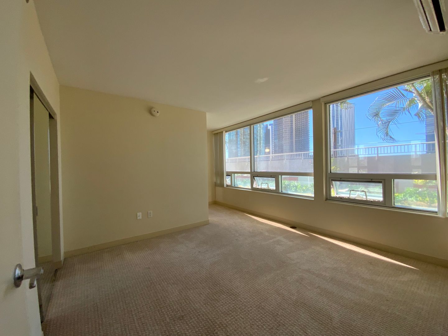Conveniently located directly across the street from the Blaisdell Center. Very close proximity to Ala Moana, Kakaako, Downtown, Freeway access, tons of shopping and dining options! Unit has 1 assigned parking stall, split a/c units in both bedrooms and living room, 2 full bathrooms and laundry in unit. Small lanai overlooks building community garden. Building amenities include secured entrance and parking, pool, hot tub, gym, community garden, BBQ/rec area. Water/sewer, trash included in rent and tenant is responsible for all other utilities. Renters insurance required. Tenant must provided proof of coverage prior to occupancy. Sorry no pets and no smoking.